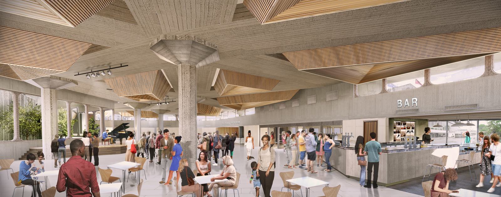 The rooftop garden is located on top of the queen elizabeth hall purcell room.